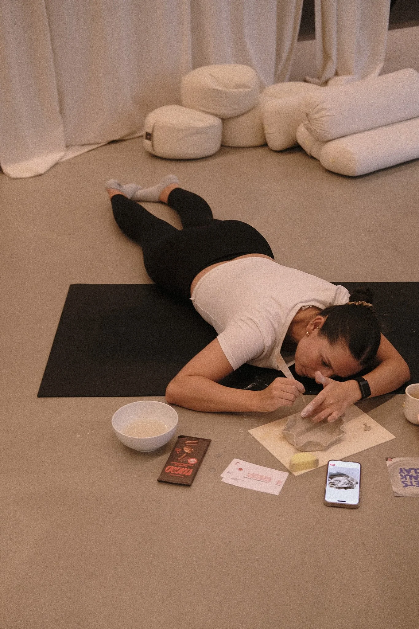 Held at Session Labs, Clay & Pilates blended mindful movement with the grounding act of making. Participants flowed through a rejuvenating Pilates session, then transitioned into clay work guided by breath and touch. With nourishing nucao chocolates and cozy pilates socks by Lagee Club, the experience celebrated slowness, connection, and the simple joy of creating with both body and hands.